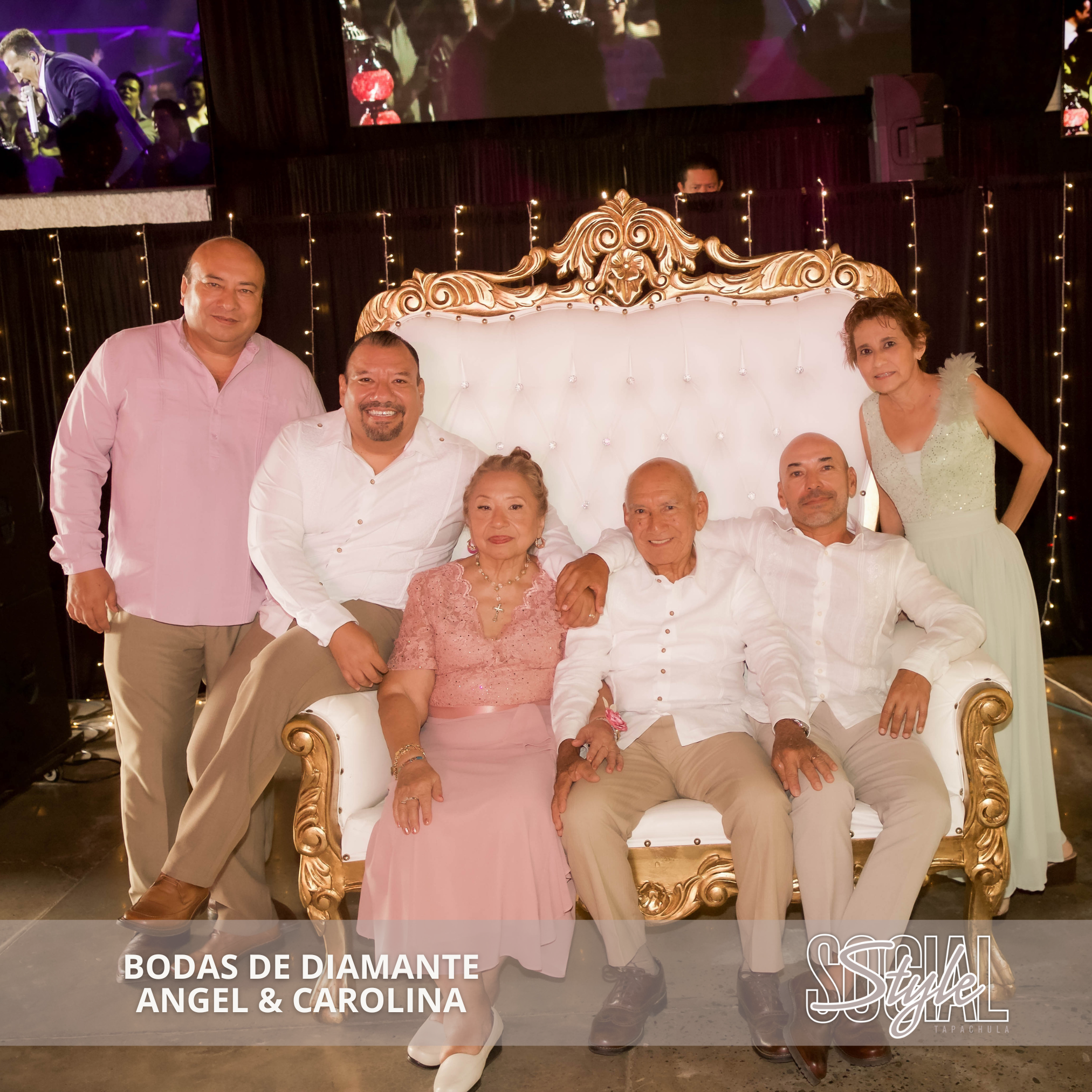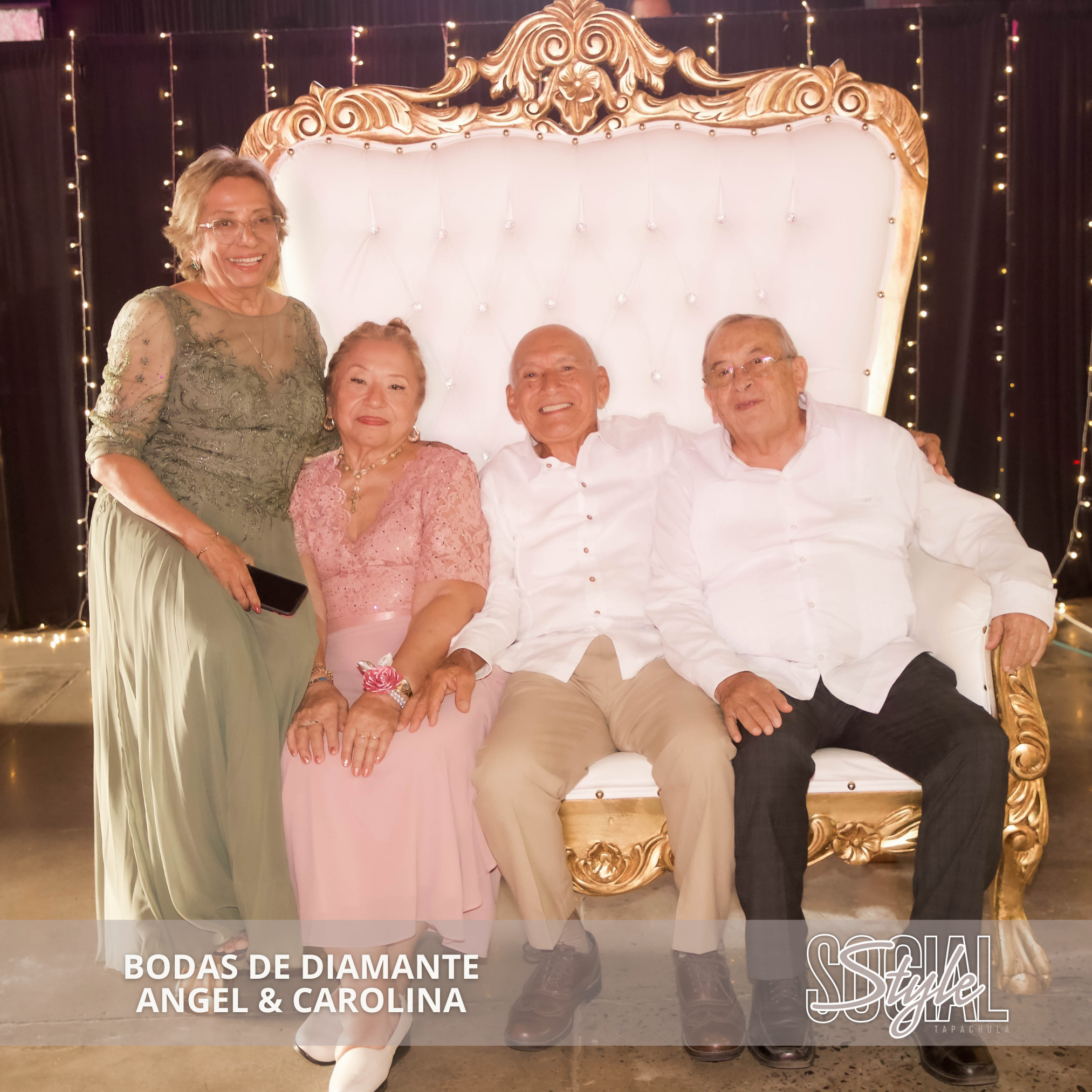 Con una gran fiesta celebraron su boda de diamante Don Ángel González Fuentevilla y Doña Carolina del Rosario Chang, su 60 aniversario de casados, donde estuvieron acompañados de sus hijos la Lic. María del Rosario, Lic. Ángel Octavio, Lic. Agustín e Ing. Rodolfo González Chang, así como sus nietos y demás familiares y amigos quienes les desearon muchas felicidades a este gran matrimonio.