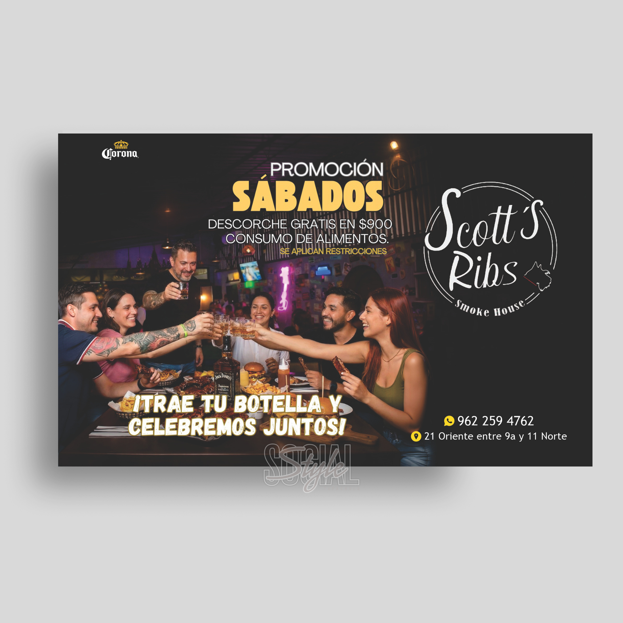 En SCOTT’S RIBS no quieren que dejes de celebrar, así que ven con tu botella, y ahí consume lo demás.
